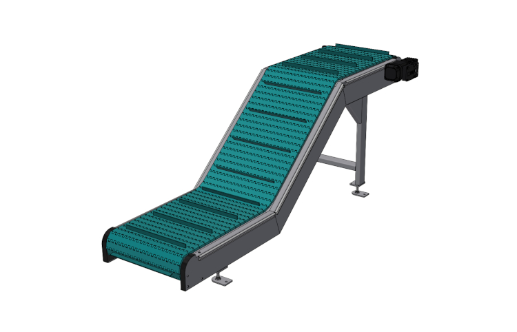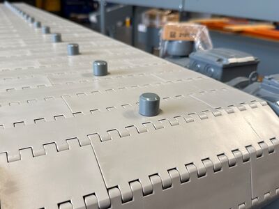 Der Slip-Tick-Effekt bei Gliederbandförderer entsteht, wenn die Haftreibung grösser ist als die Gleitreibung. Bei Förderern ist das insbesondere der Fall, wenn schwere Produkte sehr langsam gefördert werden.