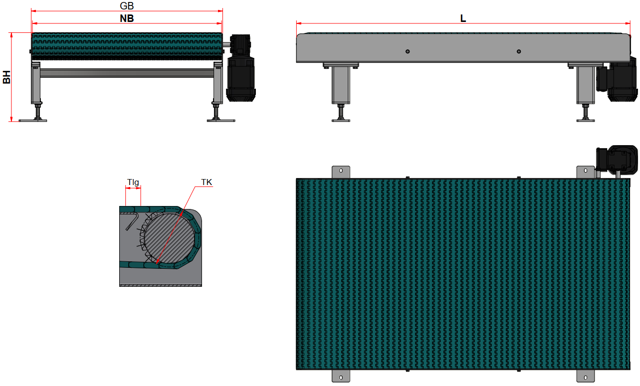 Seitenplatten und Mitnehmer-Module sind optionale Bestandteile eine Modulbandes.